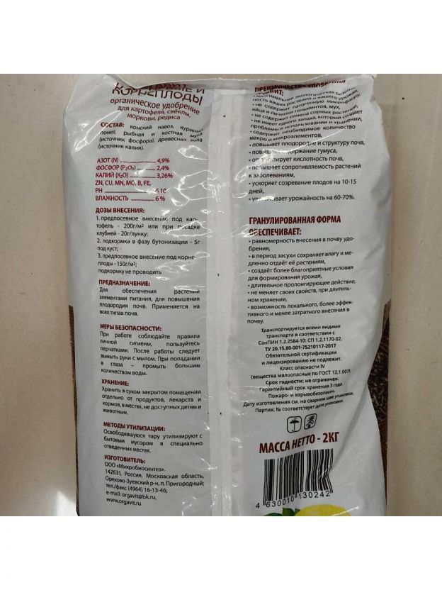 Удобрение Клубневые и Корнеплоды, органическое, гранулы, 2 кг, Оргавит