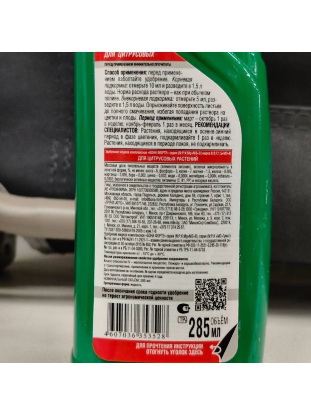 Удобрение Красота, для цитрусовых, минеральное, жидкость, 285 мл, Bona Forte