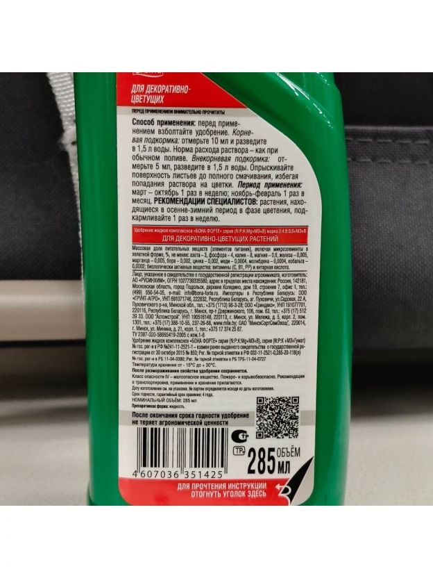 Внекорневая подкормка: отмерьте 5 мл и разведите в 1,5 л воды. Опрыскивайте поверхность листьев до полного смачивания, избегая попадания раствора на цветки.