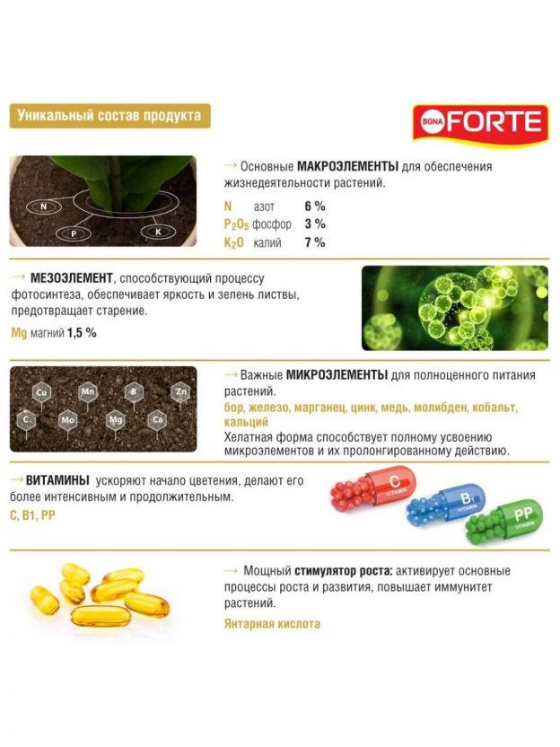 Приобретая Bona Forte Красота, легко обеспечить растениям полноценное питание и яркий внешний вид в любое время года.
