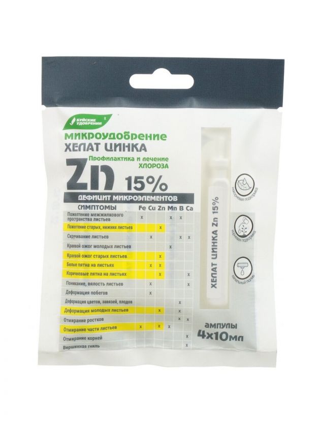 Удобрение Микроудобрение, Хелат цинка, 4х10 мл, жидкость, БХЗ