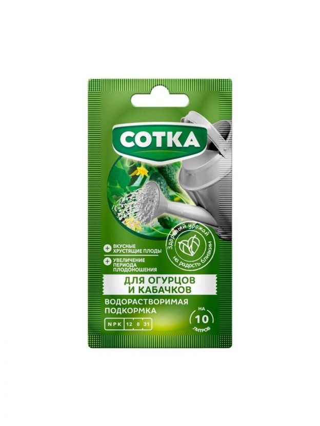Удобрение Огурцы и кабачки, для огурцов и кабачков, водорастворимое, стик, минеральное, 20 г, Сотка