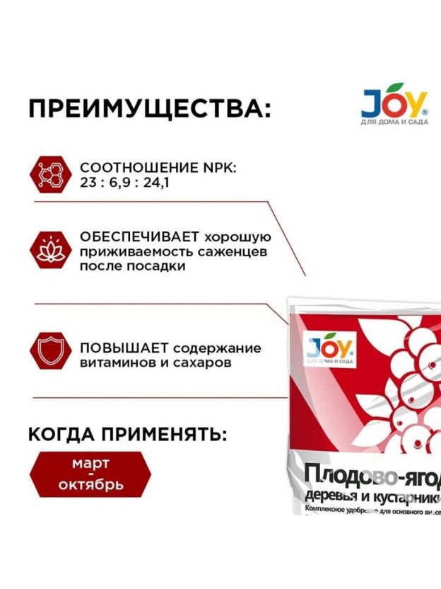 Удобрение Плодово-Ягодные, минеральное, гранулы, 1 кг, Joy