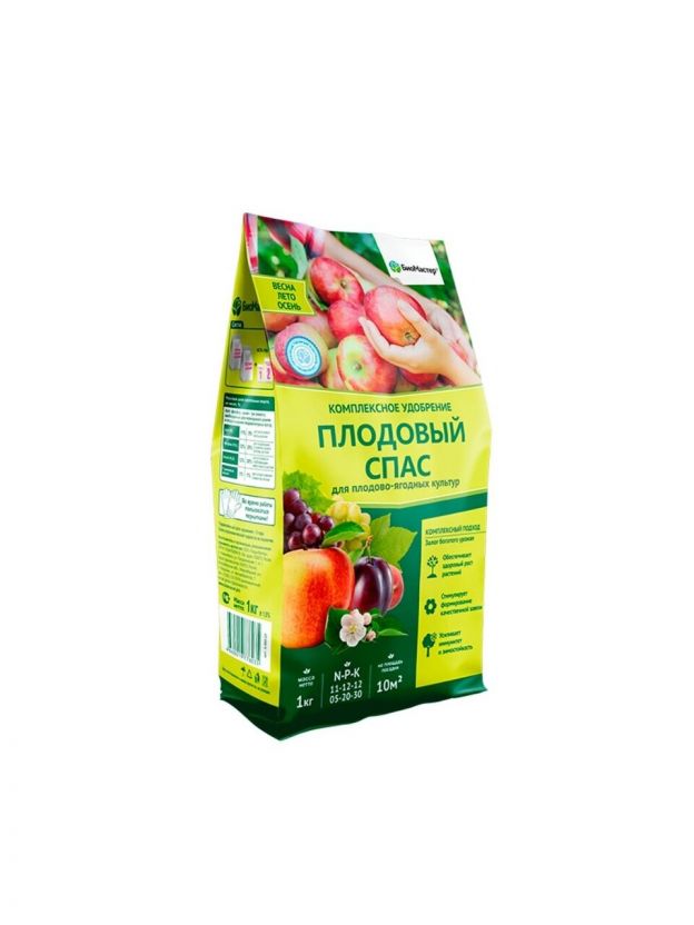 Удобрение для подкормки всех видов плодово-ягодных культур с ранней весны до поздней осени. Содержит необходимое количество питательных веществ, стимулирует плодоношение, профилактика заболеваний.