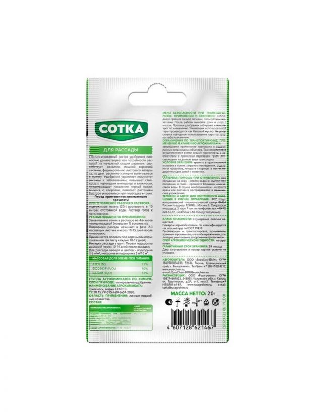 Удобр Рассада минер водорастворимое 20г Сотка стик — эффективное минеральное удобрение для крепкой и здоровой рассады. Продукт способствует быстрому росту, укрепляет иммунитет растений и защищает от болезней. Идеально подходит для зимнего и весеннего сезона, обеспечивая растениям полный комплекс необходимых минералов для активного развития. Покупка этого удобрения — залог обильного и здорового урожая.
