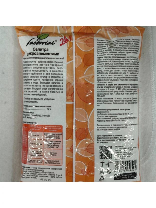 Универсальное высокоэффективное гранулированное азотное удобрение «Селитра с микроэлементами». Рекомендуется использовать в качестве основного удобрения и для подкормок садовых и овощных культур в открытом и защищённом грунте.