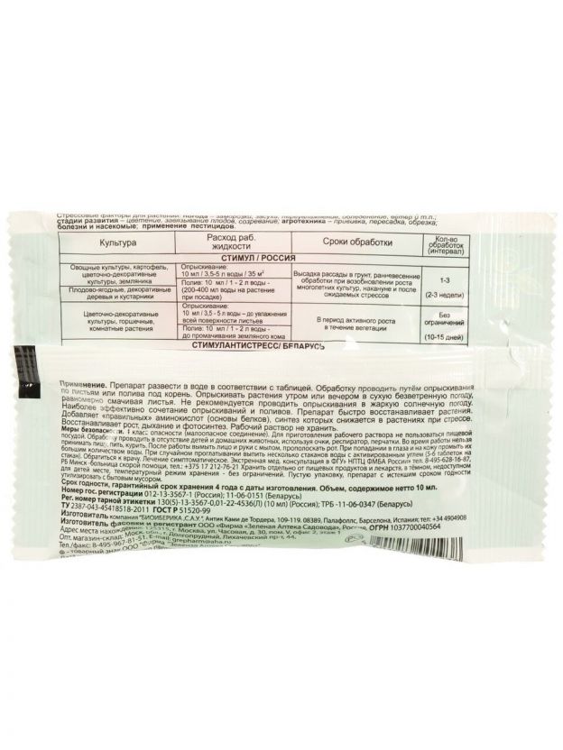 Удобрение Стимул, антистресс, жидкость, 10 мл, Зеленая аптека Садовода