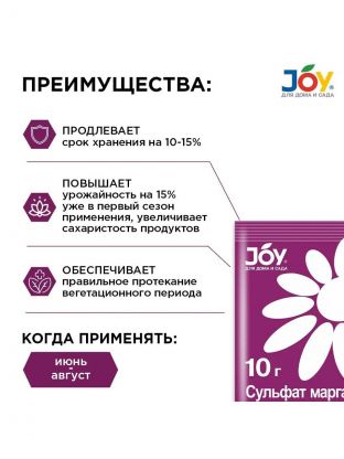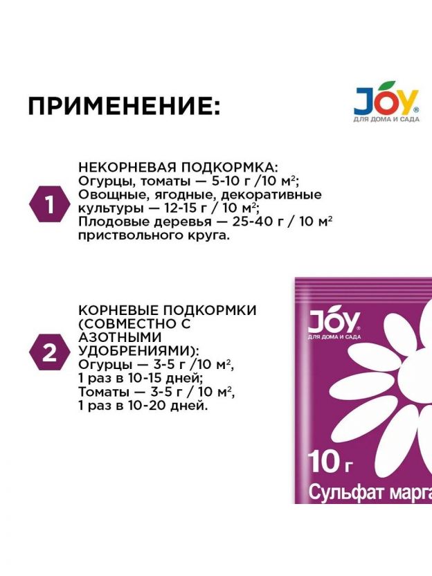 Удобрение Сульфат Марганца, для повышения урожайности, минеральное, порошок, 10 г, Joy