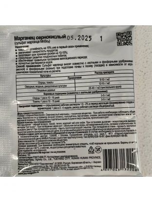 Раствор сульфата марганца восполняет недостаток марганца в растениях, осуществляет профилактику хлороза. Повышает урожайность на 15% уже в первый сезон применения, увеличивает сахаристость продуктов и продлевает срок хранения урожая на 10-15%.