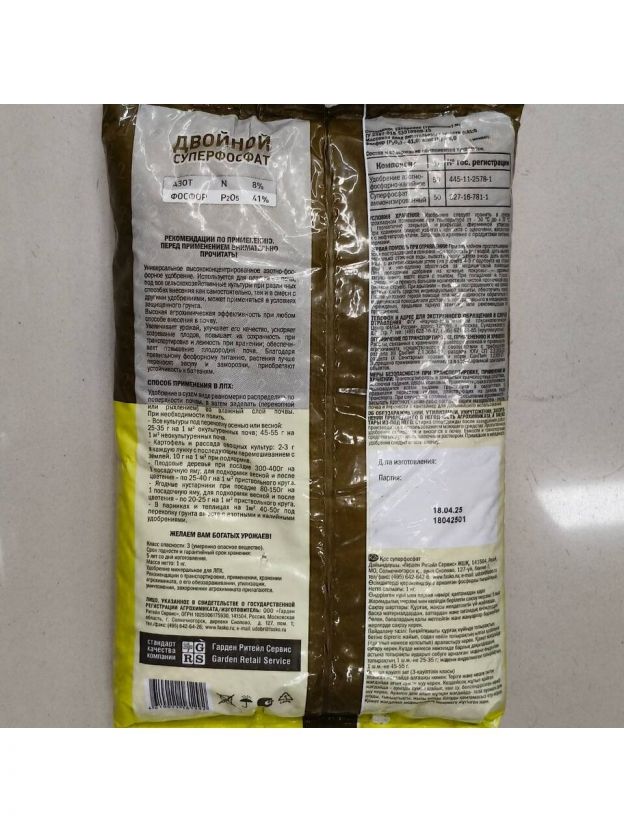 Удобрение Суперфосфат двойной, минеральное, гранулы, 1 кг, Фаско