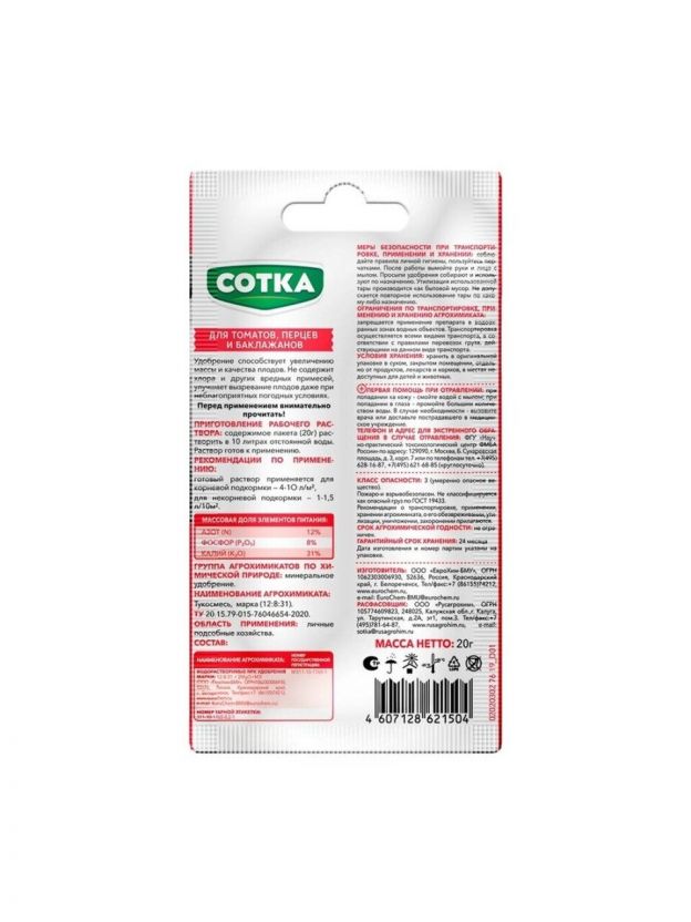 Минеральное водорастворимое удобрение для томатов, перцев и баклажанов — идеальное решение для активного роста и развития любимых овощных культур. Формат стик 20 г удобен в применении и экономичен, подходит для использования зимой и весной. Усиленный состав способствует формированию крепких и здоровых растений, повышая урожайность и качество плодов.