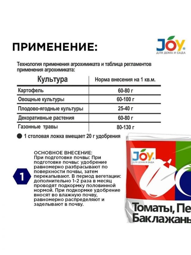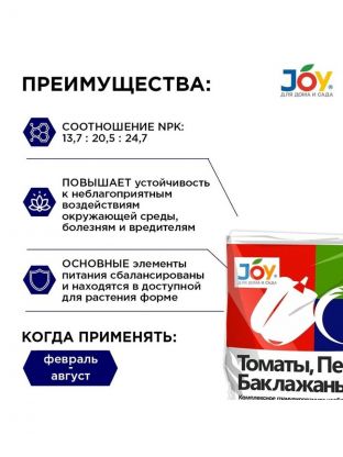 Удобрение Томаты, перцы, баклажаны, минеральное, гранулы, 1 кг, Joy