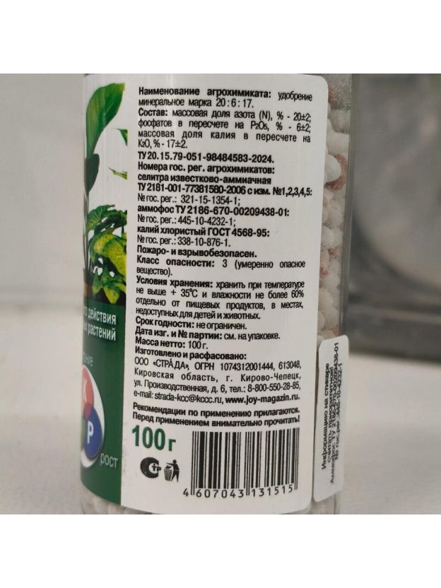 Способствует здоровому росту и правильному развитию растений.