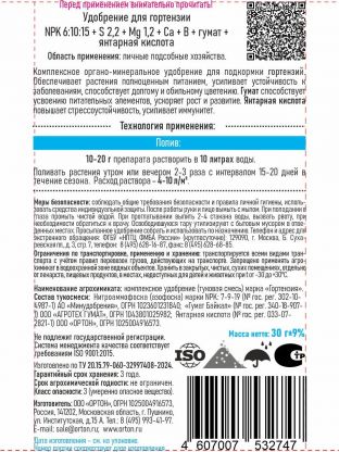 Удобрение ОМУ «Тукосмесь для гортензии» 30 г Ортон — быстрый рост и пышное цветение ваших гортензий в любое время года, удобно и выгодно для дачи и дома.