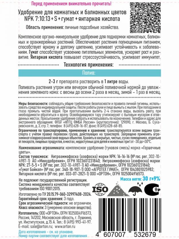 - Удобная фасовка 30 г — экономичный расход, гранулы не пылят, подходят для точного дозирования.