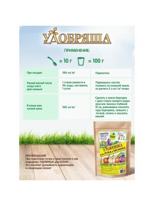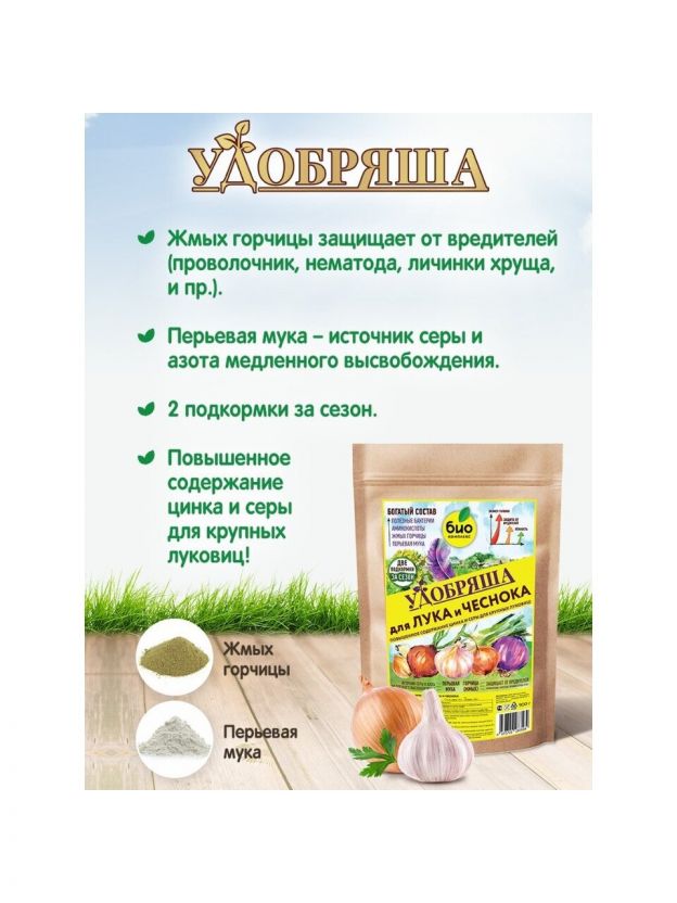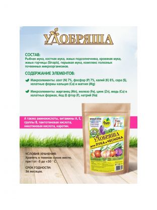 "Удобряша" для лука и чеснока – это органическое удобрение с аминокислотами и полезными почвенными бактериями. Разработано с учетом всех потребностей овощных луковичных культур в питании.
