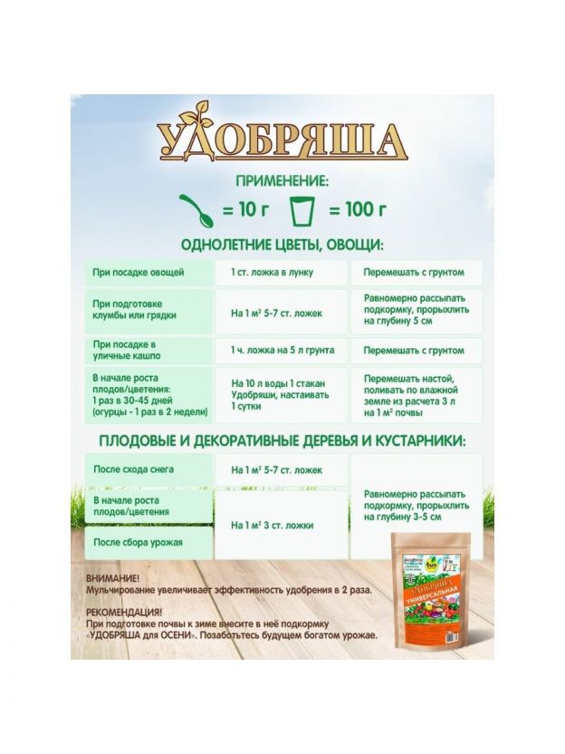 "Удобряша" обладает настолько богатым составом с полезными бактериями и аминокислотами, что Вы сможете проводить внесение всего 1 раз в 45 дней. Такая эффективная комбинация компонентов позволит Вам сократить использование гербицидов и пестицидов, но при этом получать обильный и полезный урожай.