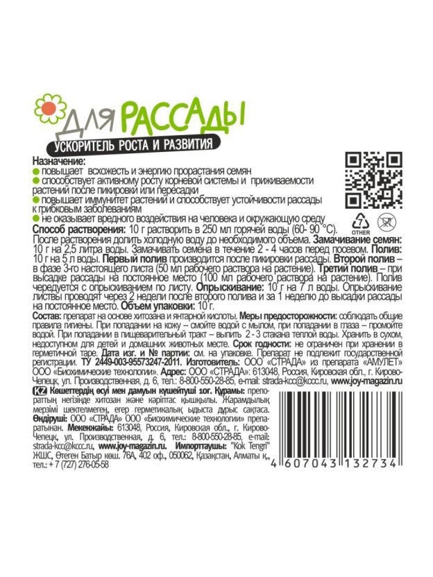 Экономичный расход, ускорение роста и укрепление иммунитета рассады, универсальное применение для любых культур дома и на даче.