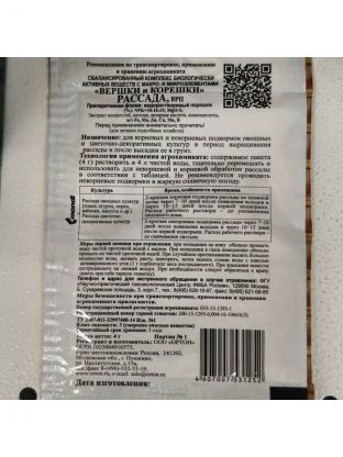 Биоудобрение применяется для выращивания рассады овощных и декоративных культур. Содержит микроэлементы - фосфор, азот и калий, а также янтарную кислоту и экстракт морских водорослей. Способствует улучшению приживаемости рассады, усиливает устойчивость к неблагоприятным внешним факторам, обмен веществ и синтез белка, обеспечивает активный рост и развитие.