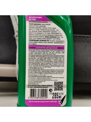 Внекорневая подкормка: отмерьте 5 мл и разведите в 1,5 л воды. Опрыскивайте поверхность листьев до полного смачивания, избегая попадания раствора на цветки.
