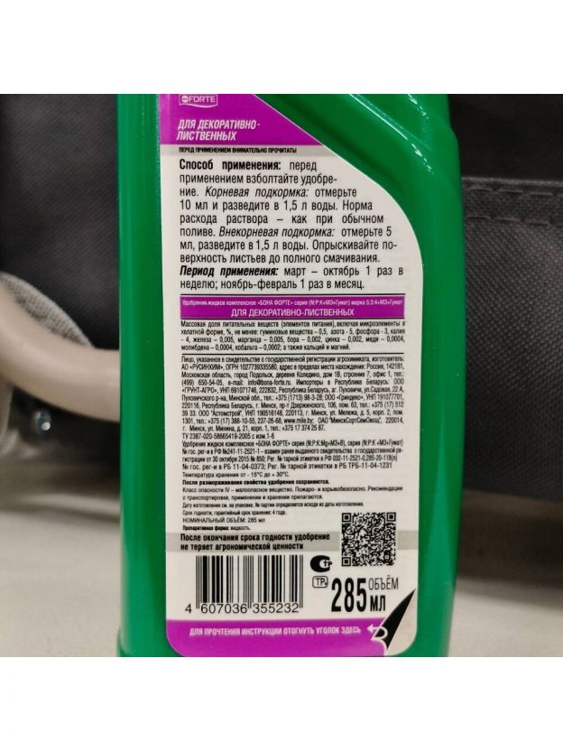 Внекорневая подкормка: отмерьте 5 мл и разведите в 1,5 л воды. Опрыскивайте поверхность листьев до полного смачивания.