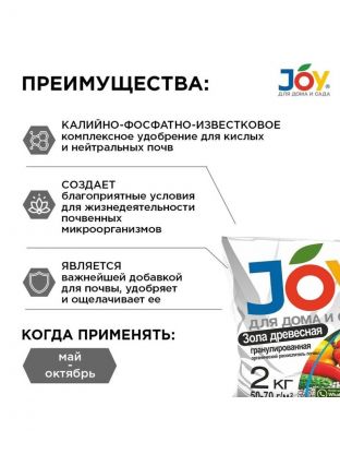 Удобрение Зола древесная, гранулы, 2 кг, Joy