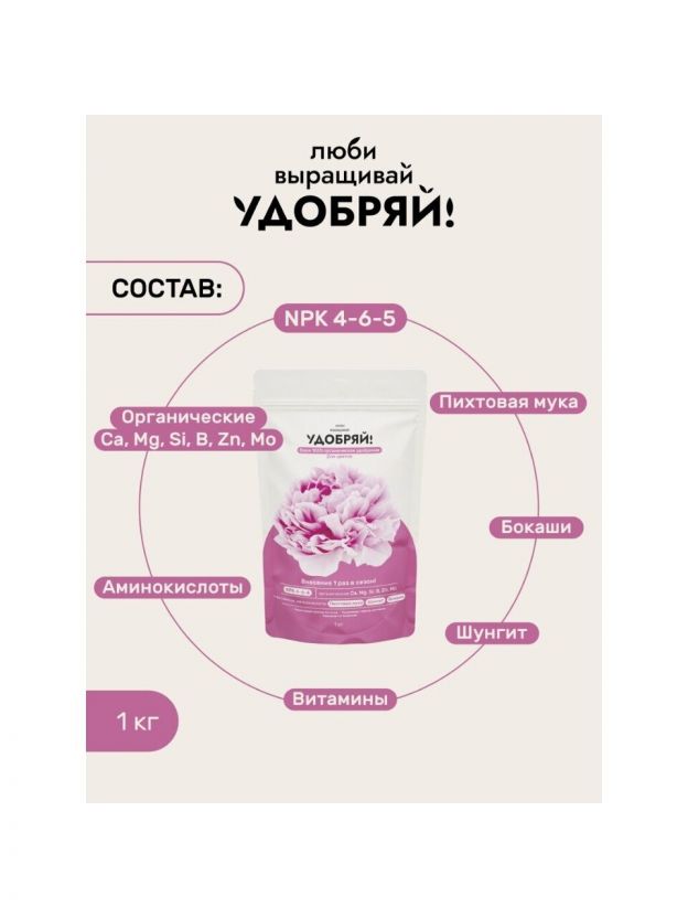 Удобрение для цветов "Удобряй!", 1 кг — быстрый рост, яркое цветение и защита от болезней для ваших декоративных растений по выгодной цене.