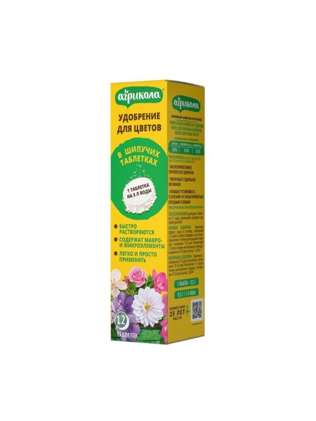 Удобрение для цветов Агрикола: шипучие таблетки 12 шт — быстрое питание для яркого цветения, экономия времени и удобство для дома и дачи.