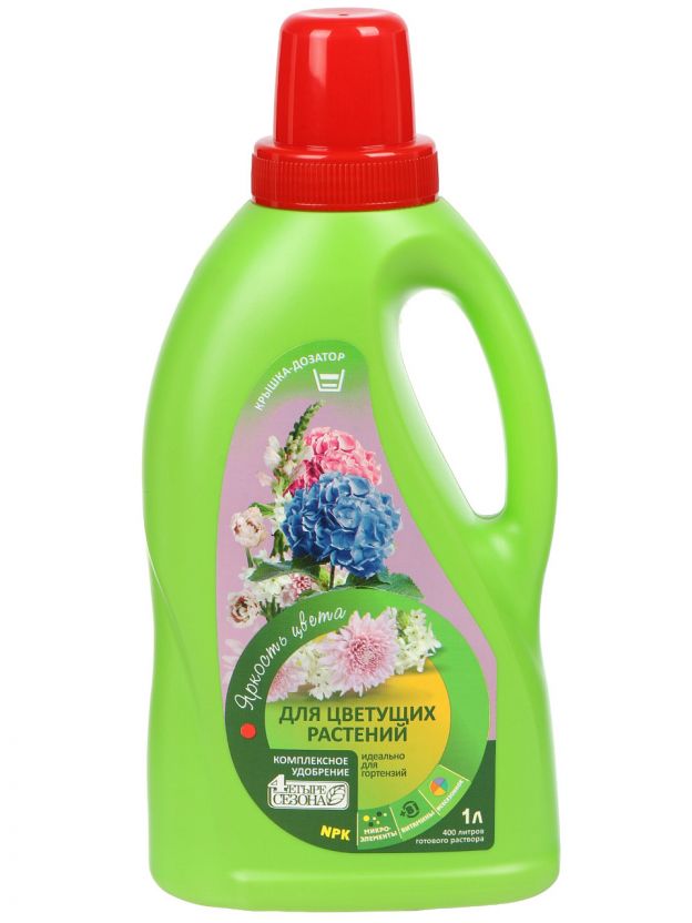 Удобрение Четыре сезона для цветущих растений, жидкое 1 л — быстрый рост и обильное цветение без хлопот. Идеально для дома, дачи, подарка.