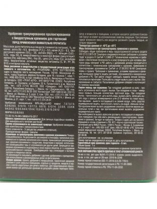 • Пролонгированное действие – благодаря входящему в состав удобрения цеолиту удобрение не вымывается со временем (одного внесения хватает на весь сезон).