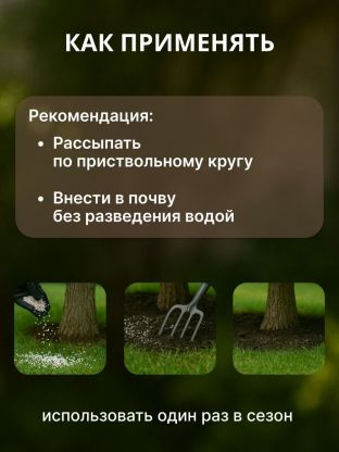 • Вносится в почву без разведения водой.