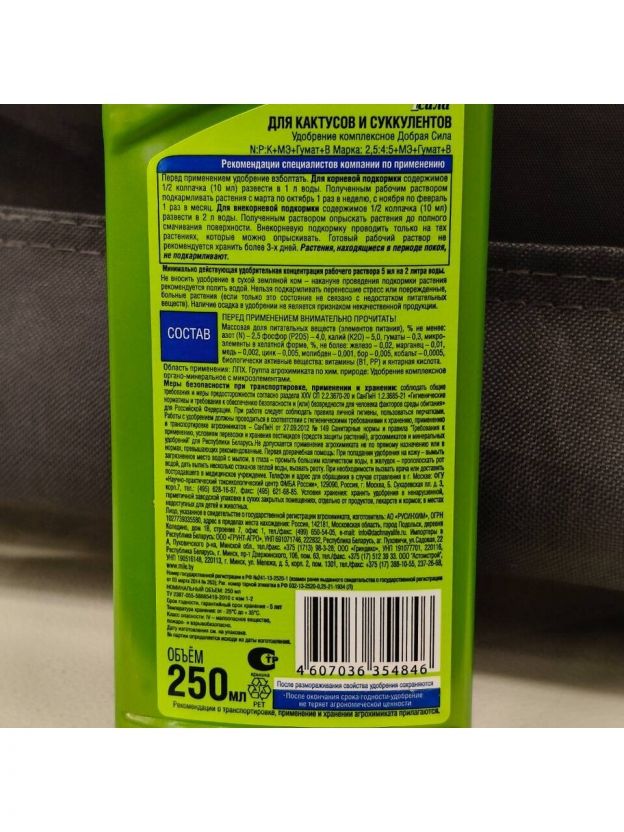 Комплексное удобрение Добрая сила подходит для всех кактусов, алоэ, каланхоэ, денежного дерева. Удобрение содержит полный комплекс питательных макроэлементов, которые полностью могут обеспечить эти суккуленты питательными веществами. Благодаря витаминному комплексу, все суккуленты становятся более выносливыми, их иммунитет увеличивается и укрепляется.