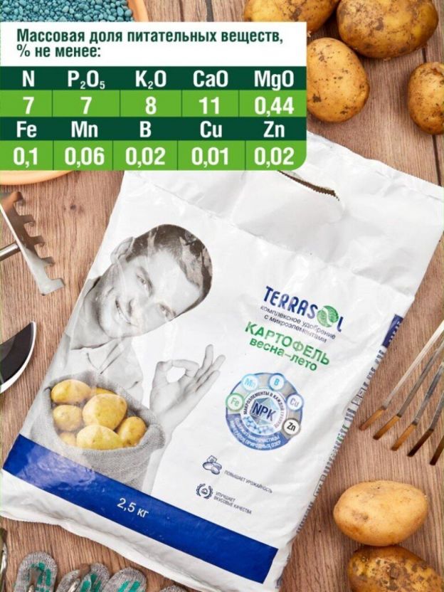 Удобрение для картофеля "Террасол" 2.5 кг — это идеальный выбор для тех, кто стремится к богатому урожаю. Специально разработанное минеральное удобрение в форме гранул, обеспечит картофель всеми необходимыми питательными веществами для активного роста и развития в весенне-летний сезон.