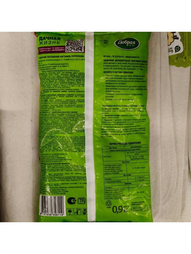 Удобрение Добрая сила Картофель-Корнеплоды 0.9 кг рекомендовано для подкормки всех видов корнеплодов: картофеля, моркови, свеклы, редьки, дайкона, редиса, репы, сельдерея, брюквы, турнепса, петрушки, пастернака, цикория, скорцонеры.