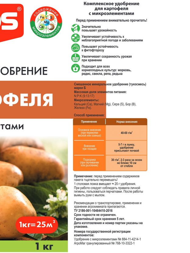 - Комплекс микроэлементов — максимальное питание для картофеля, ускоряет развитие клубней