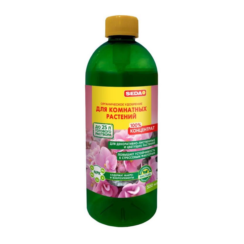 Удобрение для комнатных растений органическое, жидкое, объем 0,55л SEDA — эффективное решение для поддержания здоровья и активного роста домашних цветов. Продукт обеспечивает полноценное питание, способствует развитию корневой системы и насыщает почву полезными веществами. Ваша коллекция комнатных растений будет радовать обильной зеленью и ярким цветением.