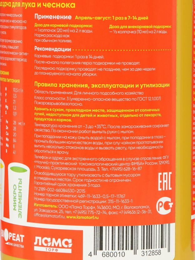 - Специализированная формула: оптимальный баланс макро- и микроэлементов для лука и чеснока