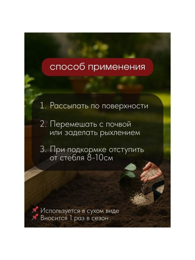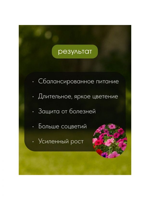 - Эффект: стимуляция роста, питание, защита от болезней.