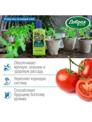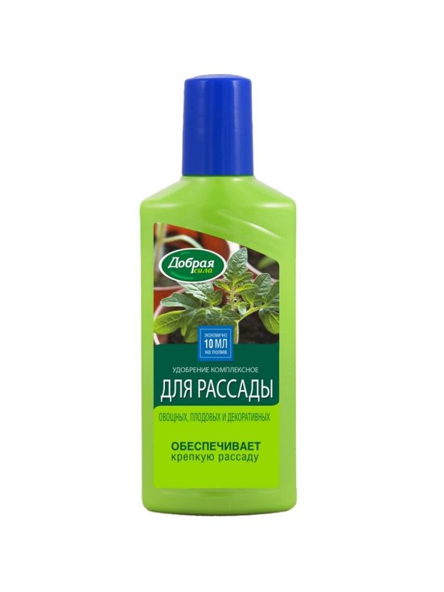Удобрение Добрая сила содержит полный комплекс веществ, необходимых для полноценного и сбалансированного питания растений. Применяется для выращивания рассады овощных, плодовых, ягодных, цветочных и декоративных культур.