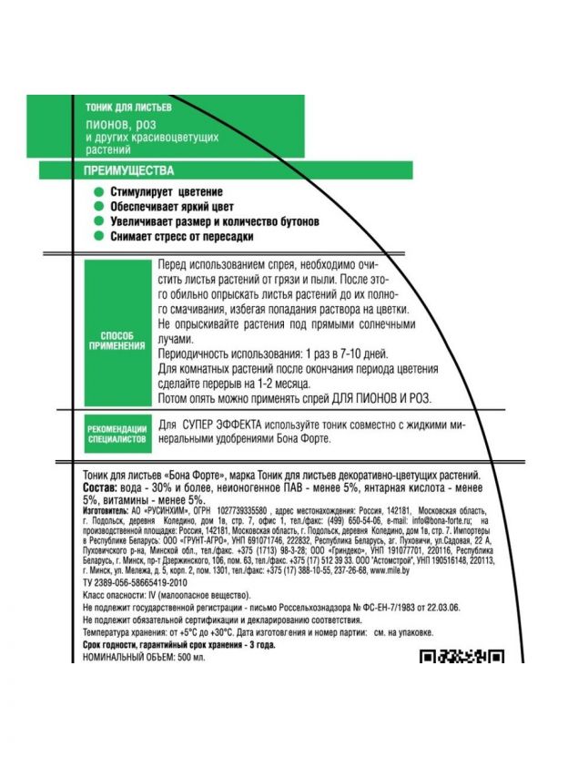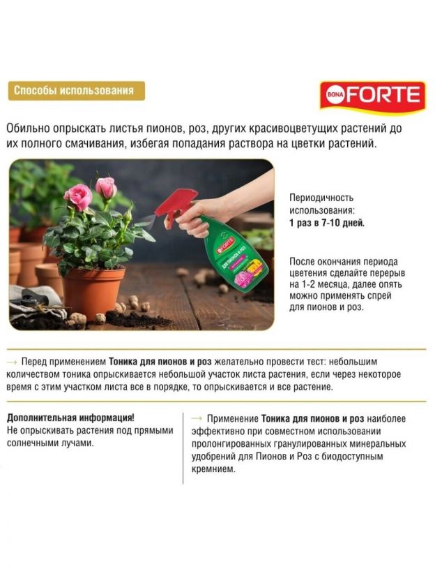 Удобрение для роз, пионов и цветущих растений, минеральное, тоник, 500 мл, Bona Forte