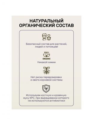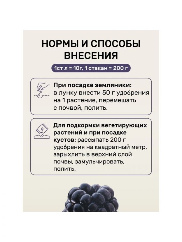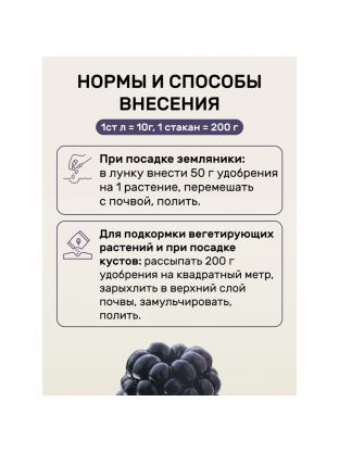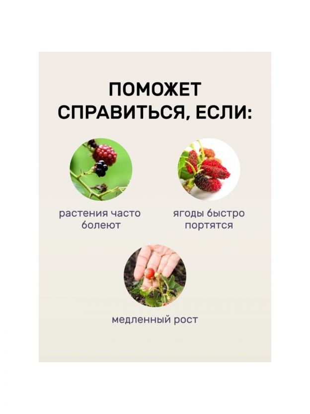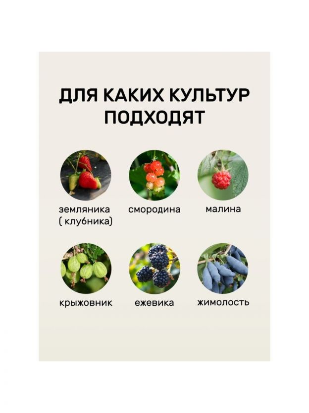 - 100% органический состав — безопасно для почвы и ягод, подходит для всех видов ягодных кустарников
