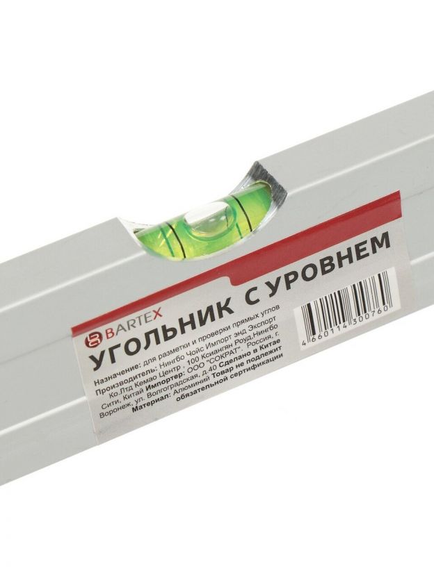 Угольник 300 мм Bartex — надежный инструмент для точных измерений и разметки. Прочный алюминиевый корпус обеспечивает долговечность, а встроенный уровень позволяет выполнять работы максимально аккуратно. Идеален для ремонта, строительства и домашнего использования.