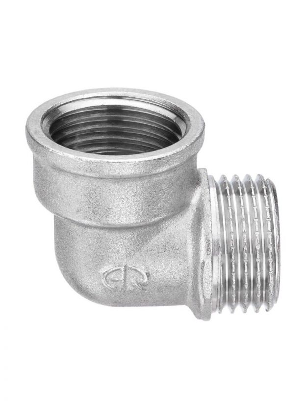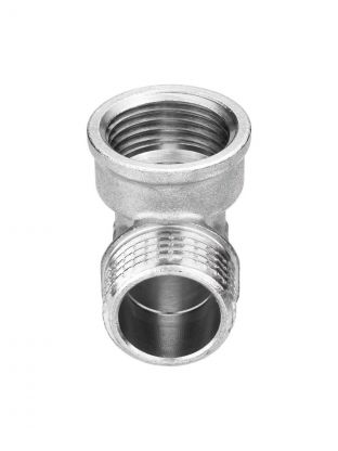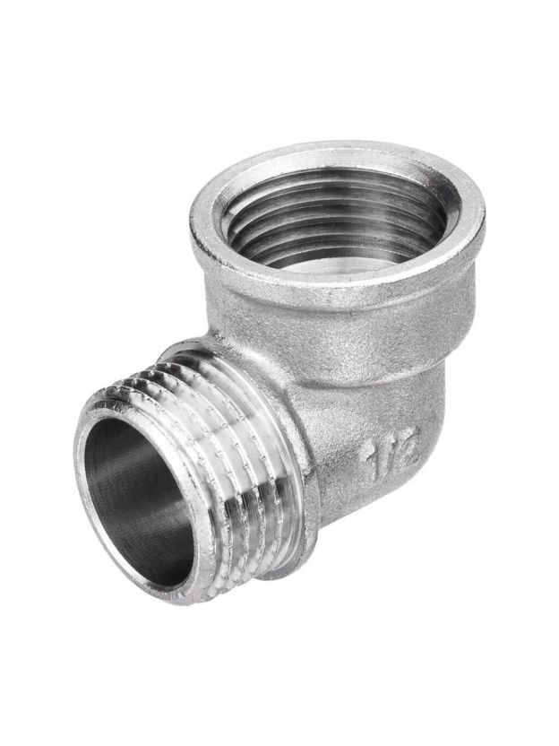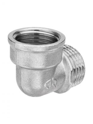 Уголок рассчитан на диаметр подключения 1/2", имеет угол 90° и комбинированную резьбу г-ш (внутренняя/наружная). Материал — латунь, покрытие — никелированное, цвет — серебристый.