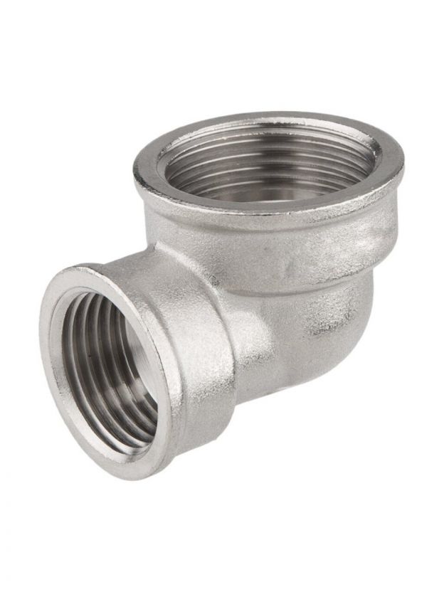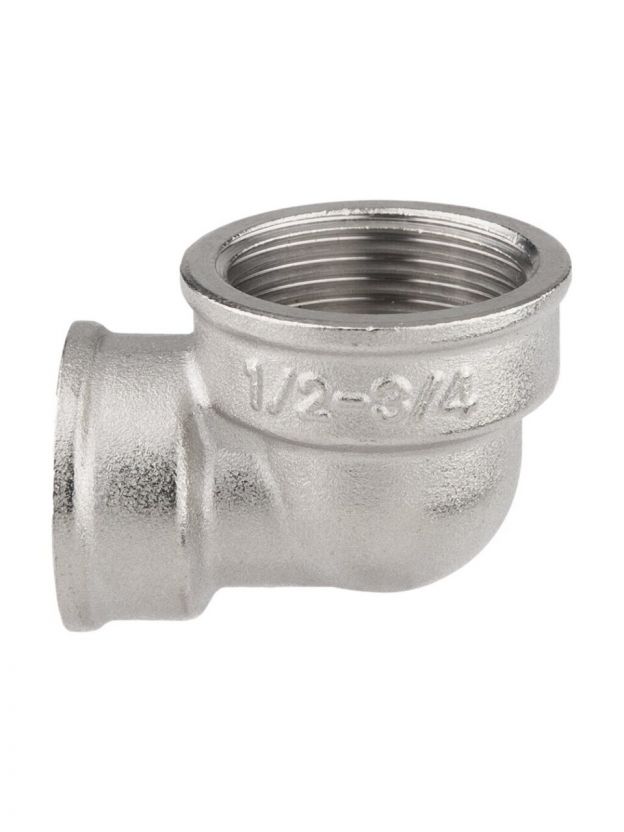Диаметр подключения: 1/2'' x 1" (внутренняя резьба), угол 90°, подходит для стандартных сантехнических труб и фитингов.