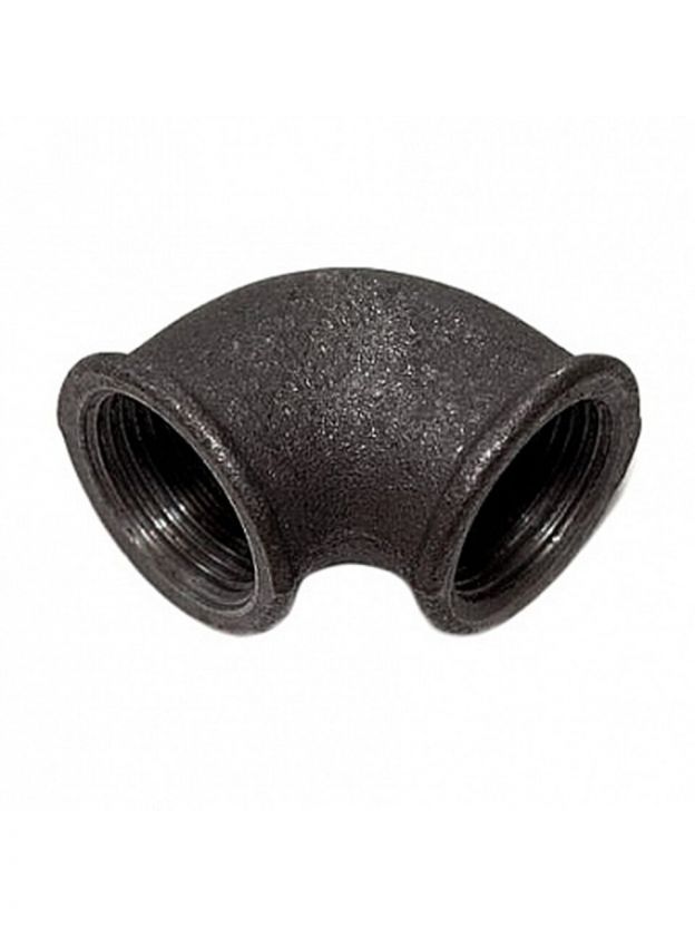 Диаметр подключения — 1 дюйм, условный проход DN 25, угол 90°, внутренняя резьба. Материал — чугун, цвет — черный, покрытие отсутствует.