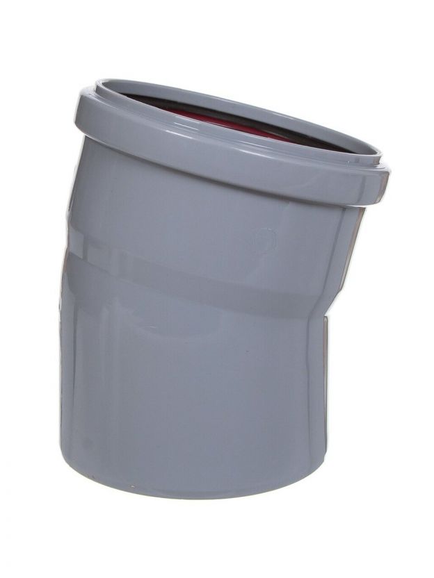 Отвод канализационный Ростурпласт диаметром 110 мм под углом 15 градусов для монтажа систем внутренней канализации.