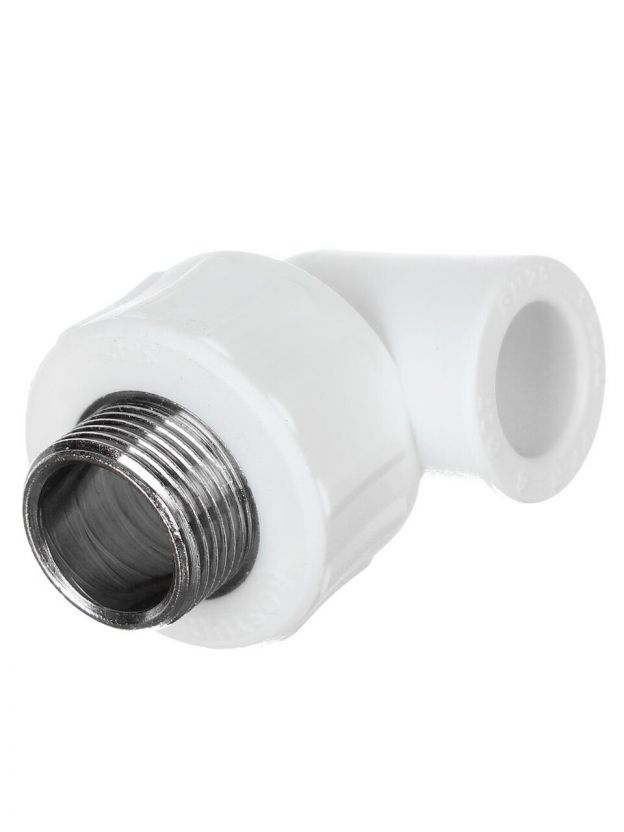 Уголок комбинированный полипропилен, d20х3/4", наружная резьба, белый, РосТурПласт