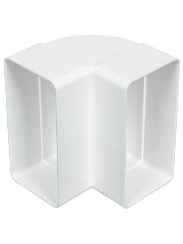 Уголок вентиляционный – используется в системах приточной или вытяжной вентиляции помещений в качестве соединительного элемента разноразмерных прямоугольных каналов между собой под углом 90 градусов. Изготовлено из ударопрочного пластика белого цвета. Плоские каналы соединяются между собой напрямую.