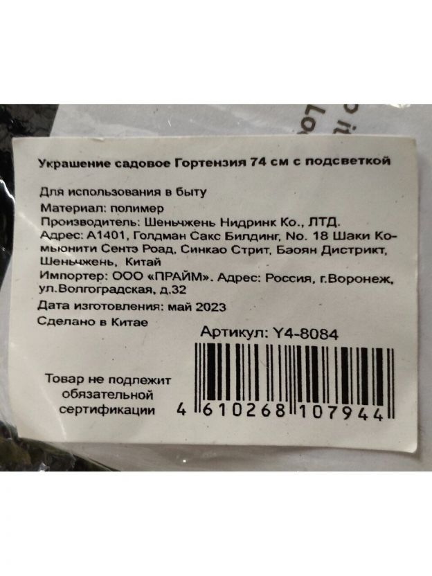 • Эстетика и стиль: Гортензия выполнена из полимера, что делает ее долговечной и устойчивой к погодным условиям.