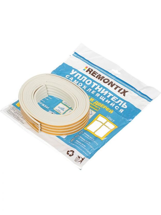 Уплотнитель E, самоклеящаяся основа, 9х4 мм, 12 м, белый, Remontix, REMEW00012